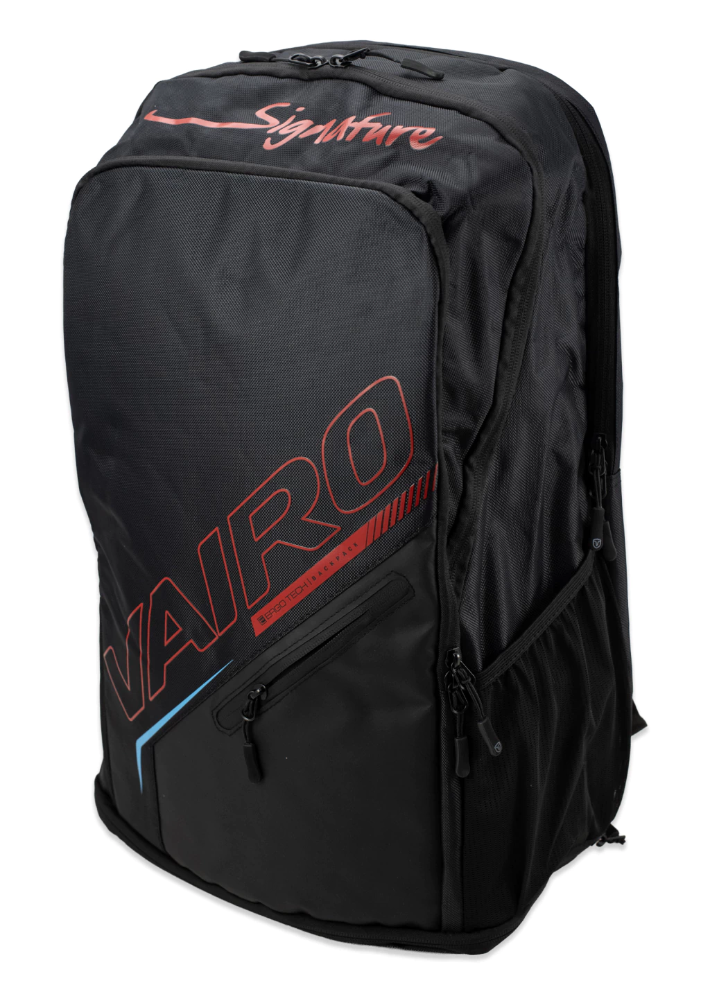 Descubre la Mochila Vairo Signature Back Pack en color negro y rojo, diseñada para aquellos que buscan combinar estilo y funcionalidad. Ideal para los amantes del pádel que desean llevar su equipo de manera cómoda y segura al campo.