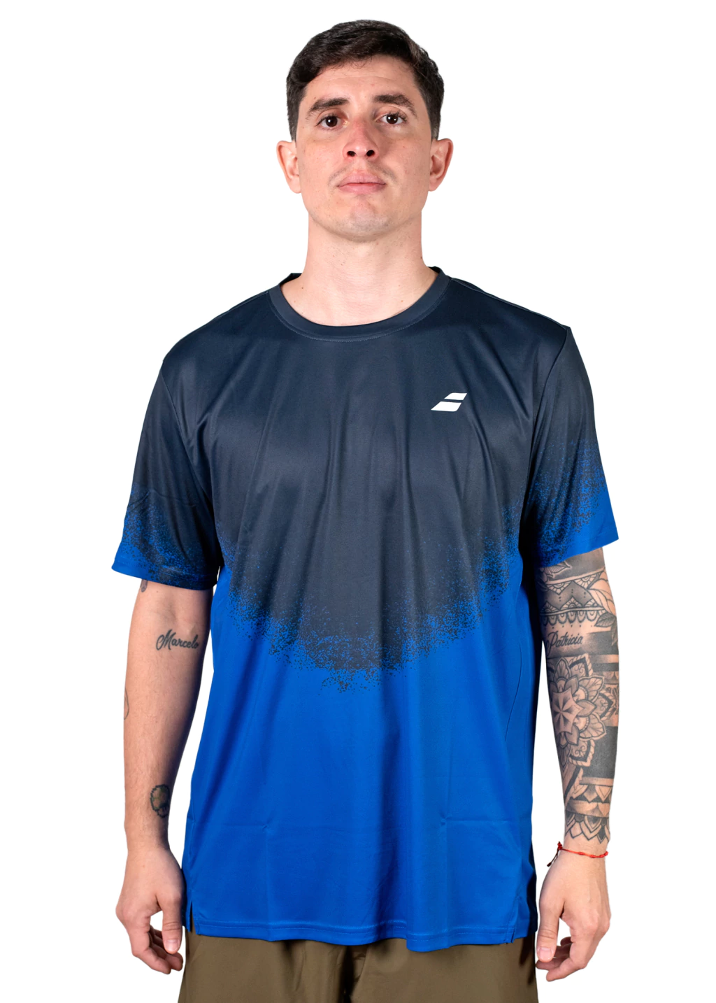 Su diseño sublimado con estampa en degrade aporta un look dinámico y actual, mientras que los tajos laterales y el calce regular favorecen la libertad de movimiento esencial para cualquier disciplina deportiva. Los logos estampados de Babolat al frente y en la espalda refuerzan la identidad deportiva y la calidad de una marca reconocida internacionalmente.