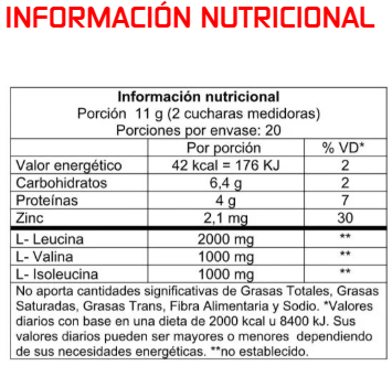 Mezclá 2 cucharas medidoras (11 g) en 200 ml de agua fría. Agitá energéticamente durante 30 segundos y consumí 30 a 45 minutos antes y/o después de entrenar. También podés tomarlo durante el ejercicio o por la mañana en días de descanso. Es normal que queden partículas blancas en suspensión.