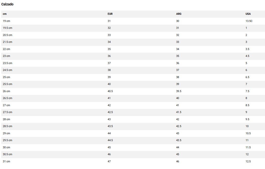 Guía de talles